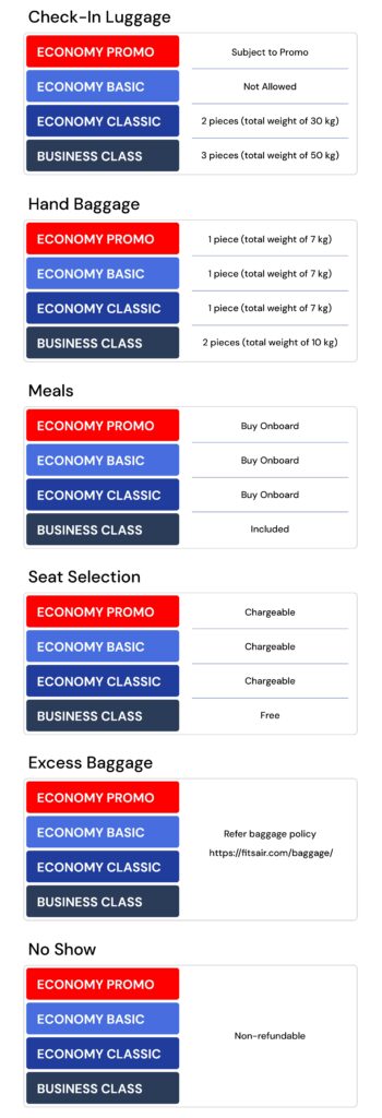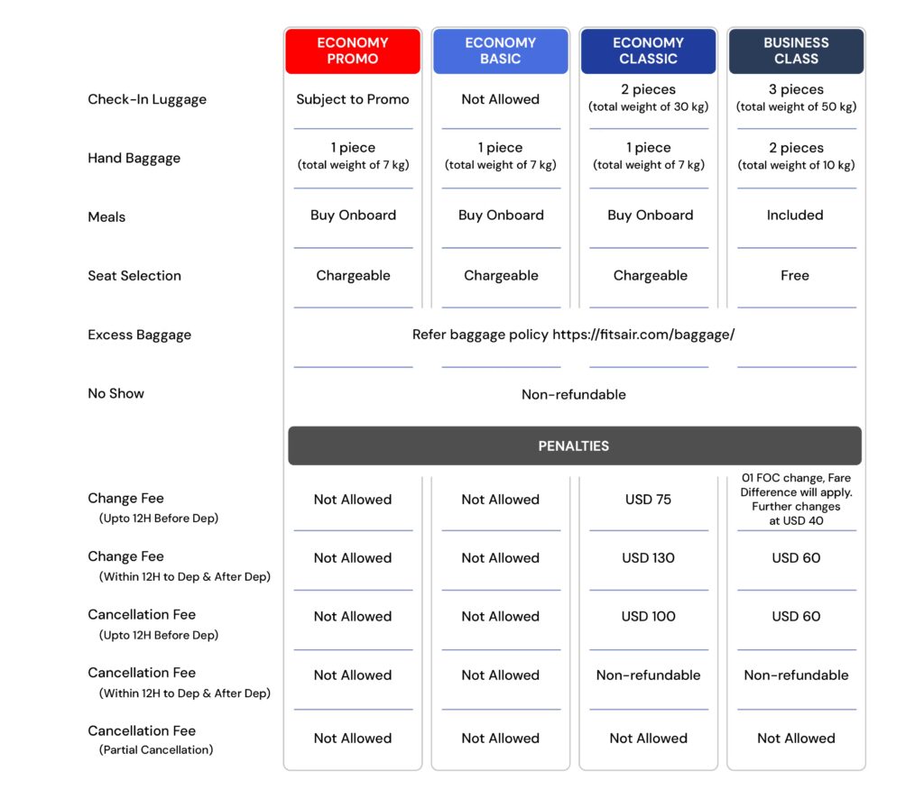 We have 4 fare types that lets you choose what’s most valuable to you. The fare type you choose will determine your checked baggage allowance, whether you will be able to change or cancel your booking and the option to select your seat in advance.